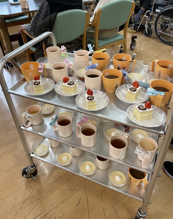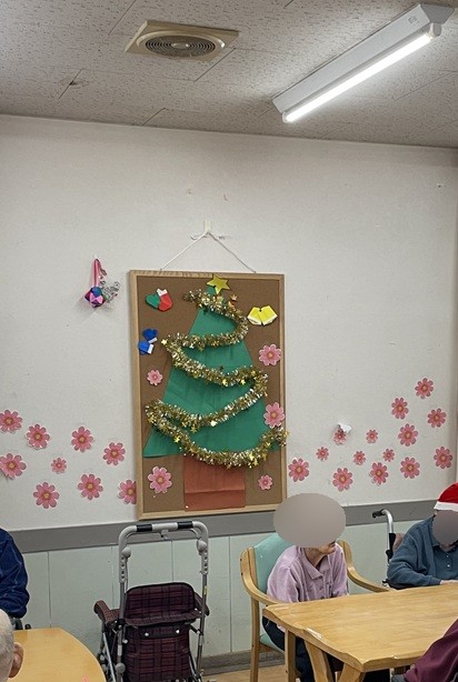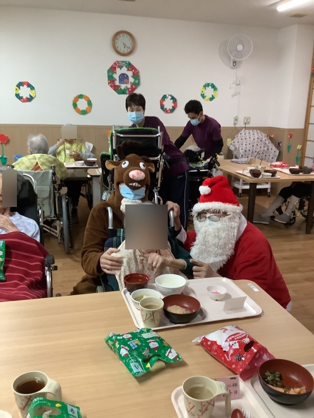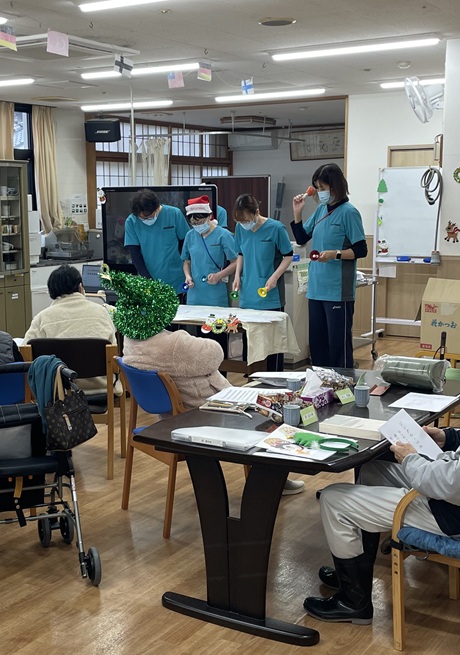 こんにちは、西山寮です!各フロアでクリスマス会を行いました。各フロアそれぞれがんばって飾りつけや催し物をしていました。歌を歌ったり、ハンドベルしたり、加えてケーキやプリンで利用者様に楽しんでいただきました!